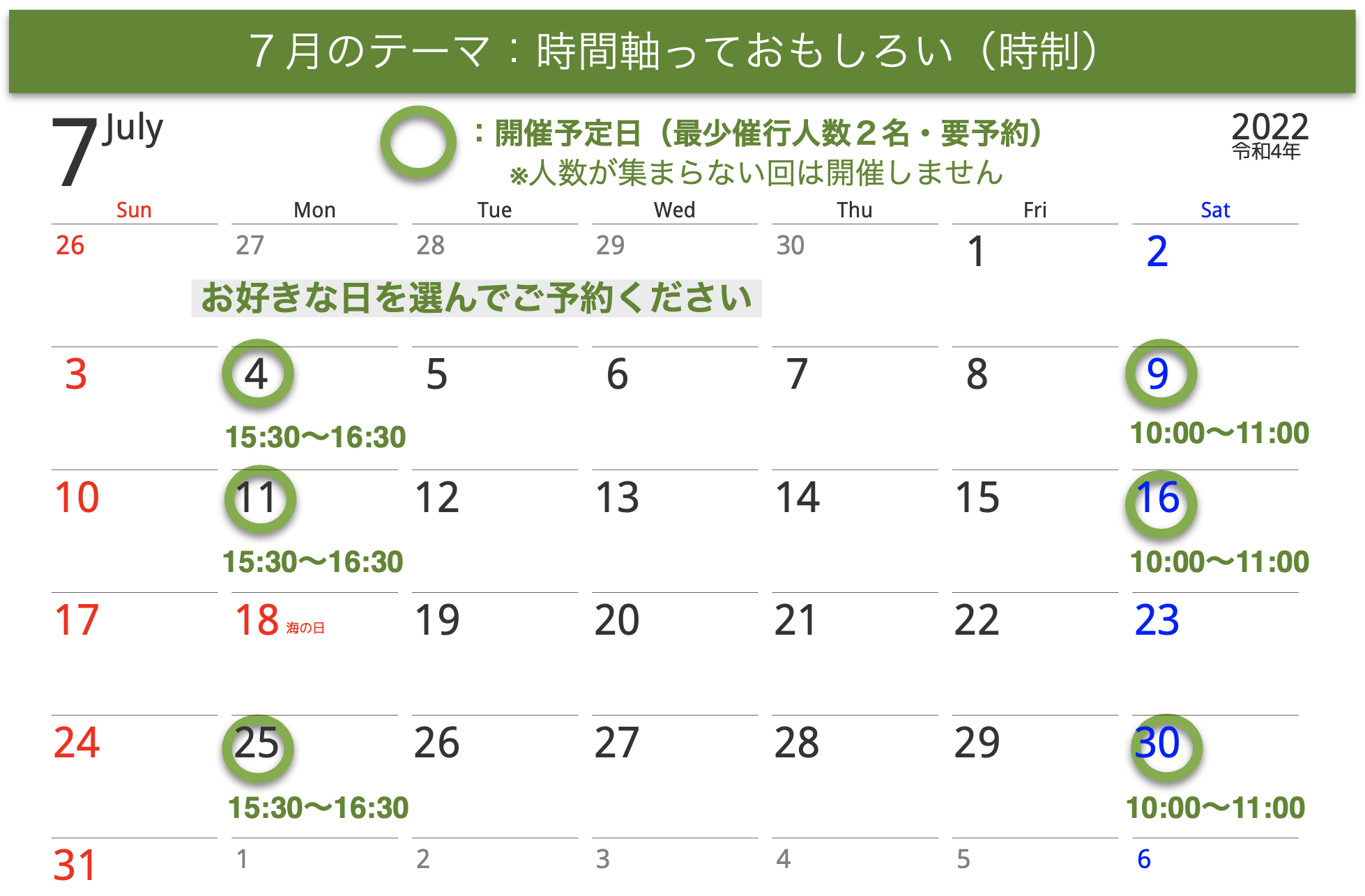 7月:詳しくは、プログラムご紹介のグループレッスン詳細をご覧下さい。